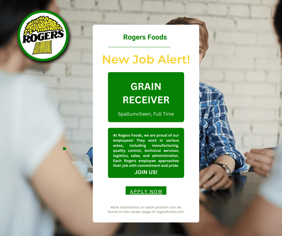 Rogers Foods Ltd. is an equal opportunity employer that offers competitive salaries and a comprehensive benefits package.