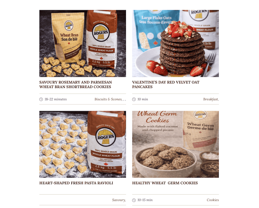 • Valentine’s Day Red Velvet Oat Pancakes – Fluffy red velvet pancakes made with Rogers Whole Wheat Flour and Oats for a hearty, wholesome twist. Top with berries and whipped cream.